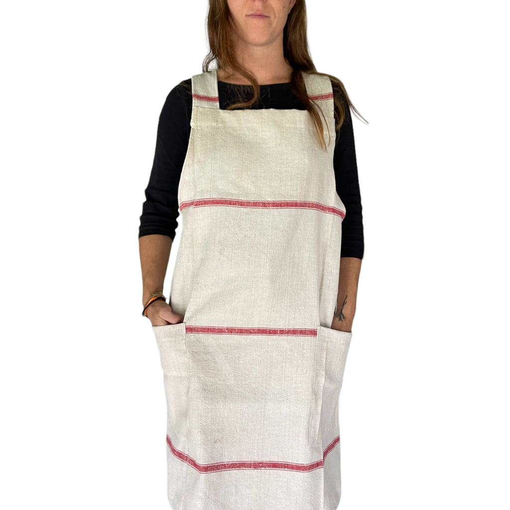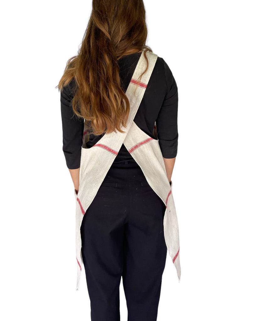 Red striped linen Apron