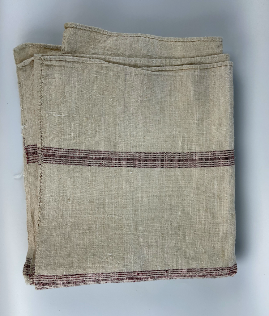 Vintage multi stripe & Linen TABLECLOTH