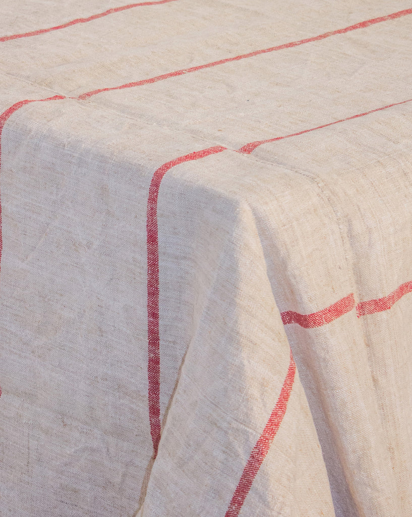 Red striped Linen Tablecloth #001