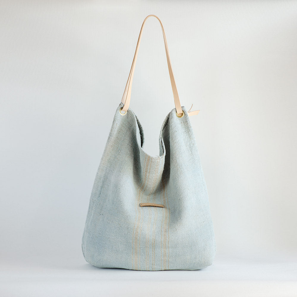 Made from a beautiful antique hand-woven hemp grain sack uniquely dyed from Europe, the textile dates from the early 1900s.